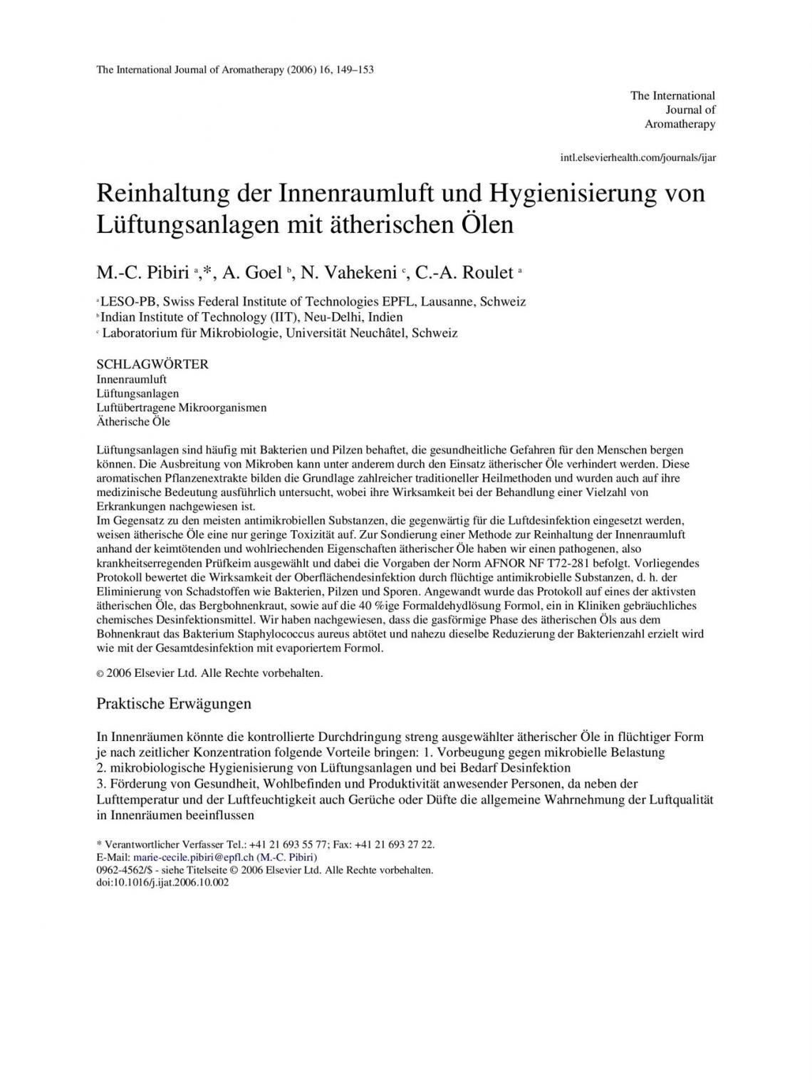 Düfte gegen Keime - Studie zum Nachlesen als PDF
