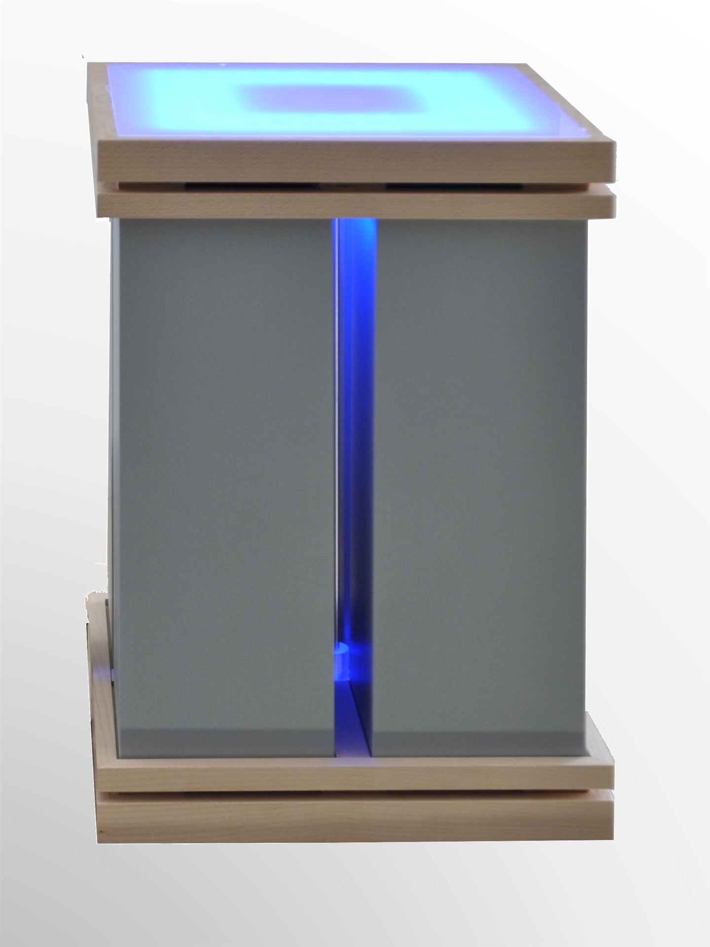 Der EmotionCube bietet auf kleinstem Raum eine gezielte einsetzbare sinnliche Erfahrung, indem das Riechen, Hören und Sehen stimuliert wird und somit die Emotionalität fördert.